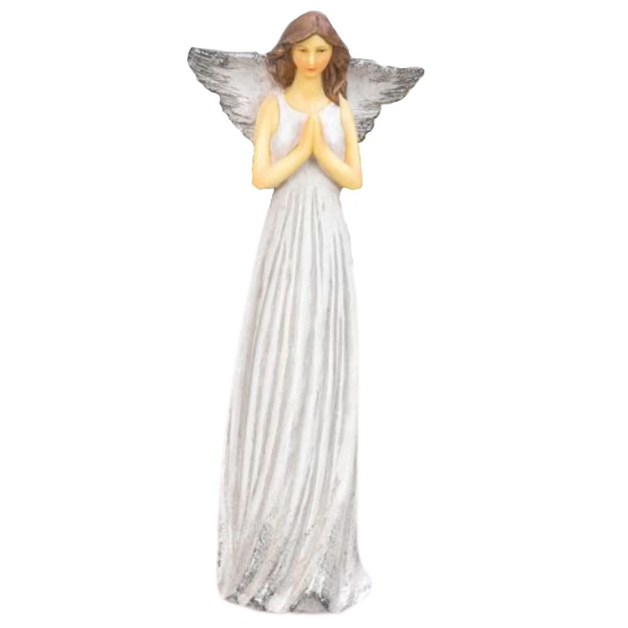 An angel stands with hands together in front of her heart while praying for Peace on Earth.