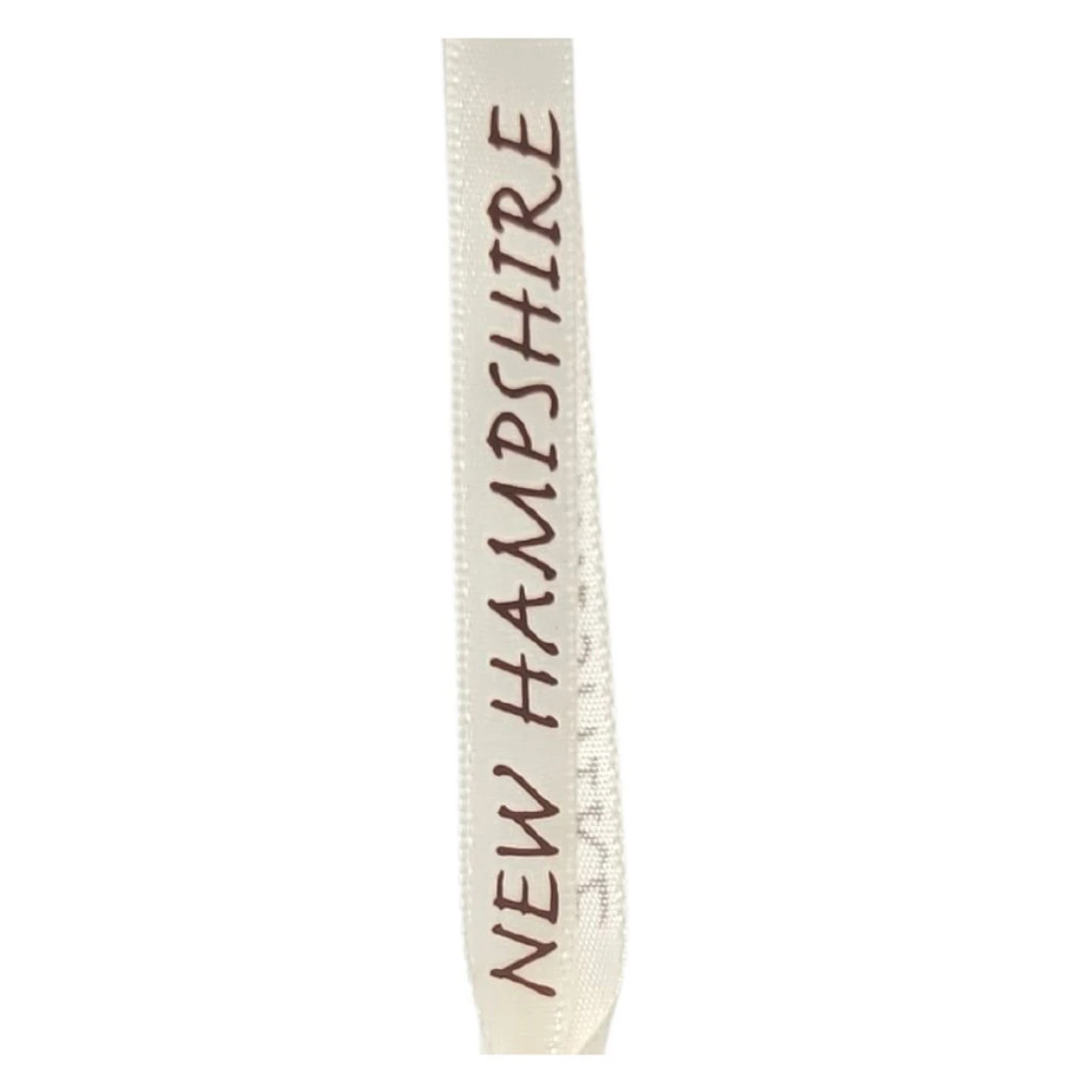 Bring home a little bit of the New Hampshire mountains with this brass plated ornament. Designed by an Ohio artist this beautiful stainless steel ornament will bring you and yours a lifetime of memories. Ribbon fonts may vary.