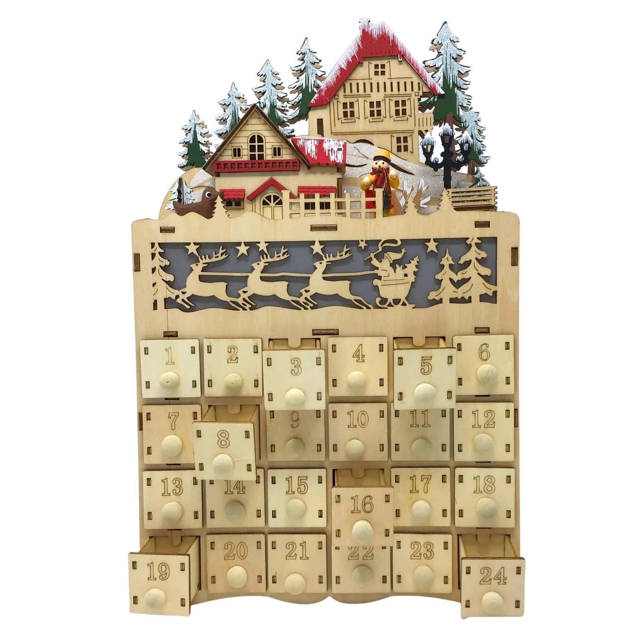 Get ready for a truly enchanting holiday season with our Light Up Advent Calendar featuring a Christmas Village and Santa with his reindeer in his sleigh! This wooden masterpiece stands tall at 14 inches and is the perfect way to count down the days until Christmas. Each of the 24 drawers can hide a special surprise or treat, and the intricate Christmas Village scene comes to life with a warm and inviting glow. Imagine the magic and excitement on your children’s faces as they open each drawer and watch the village come to life. It’s the perfect addition to any home, office, or classroom during the holiday season.