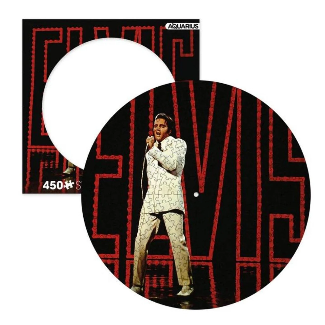 450 PIECE JIGSAW PUZZLE: Elvis Presley fans will love this 450 piece puzzle featuring the classic picture disc design we all loved so much way back when. It measures a 12 x 12 inches when completed