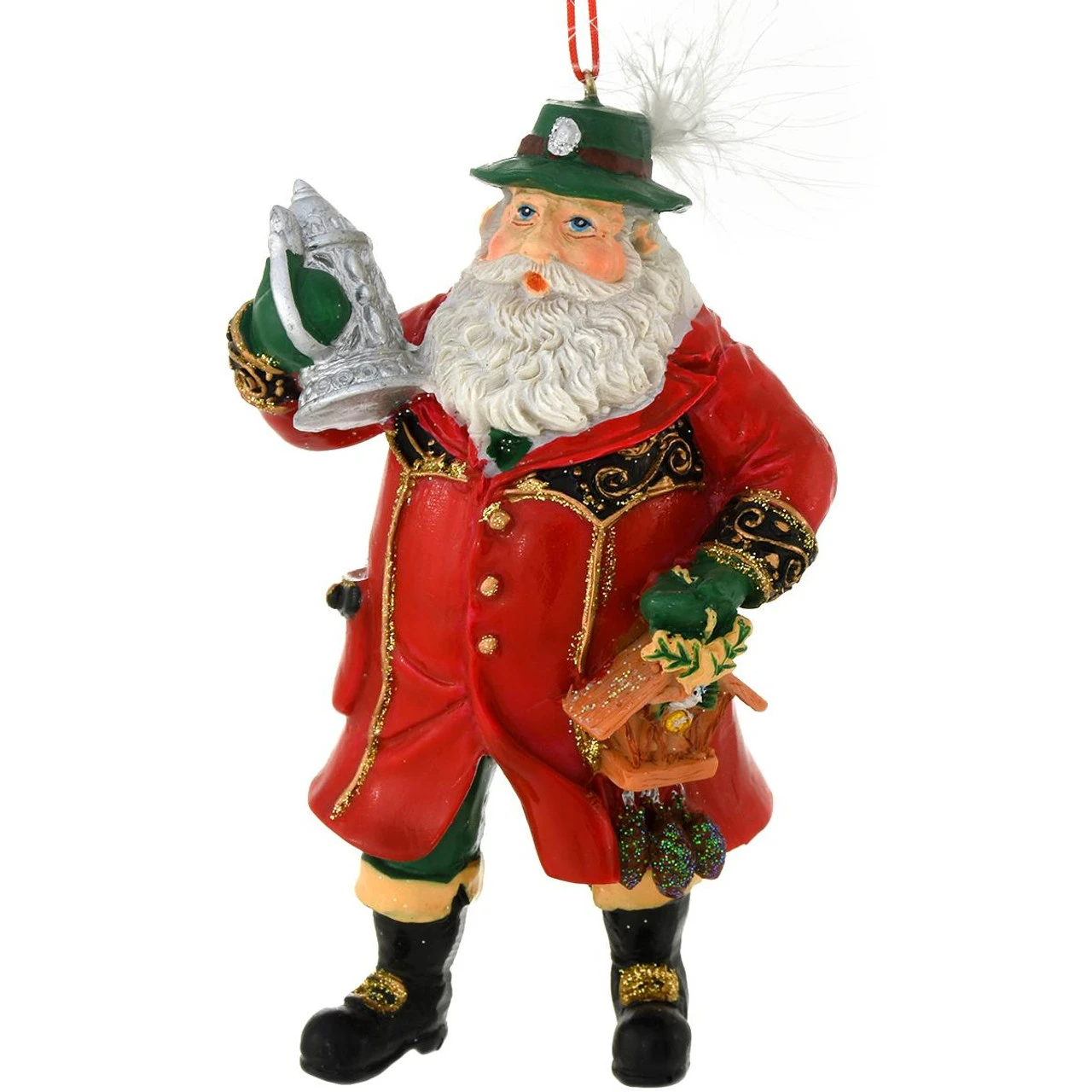 Proudly displaying his heritage with a stein and cuckoo clock, this German Santa would love to wish you and yours a very Fröhliche Weihnachten! Crafted of resin and coming ready to hang with a red cord, this 5″ tall Bronner’s exclusive German Santa ornament will add a touch of Germany to your tree.