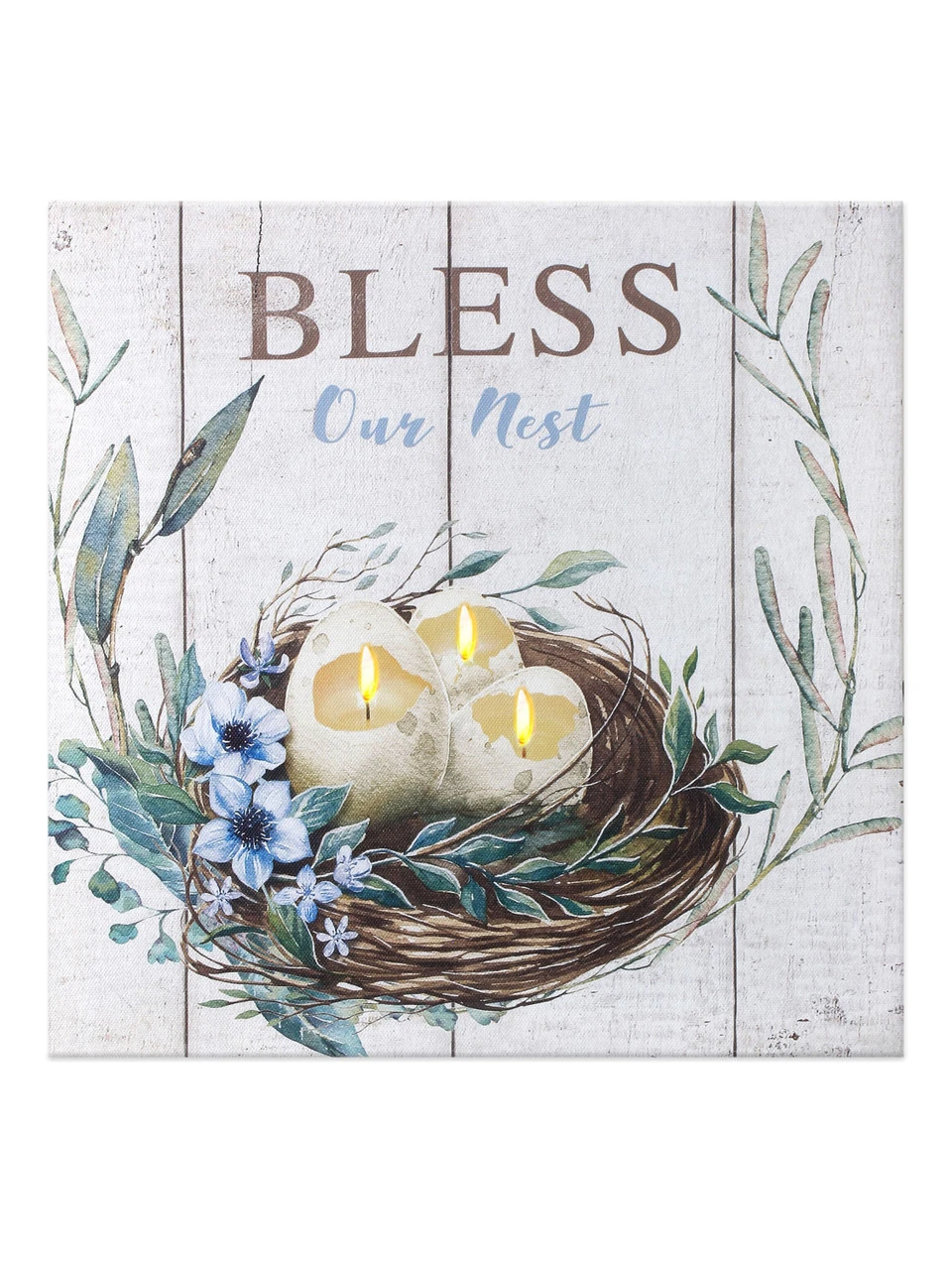 LED Bless Our Nest Print 12X12″ B/O Timer