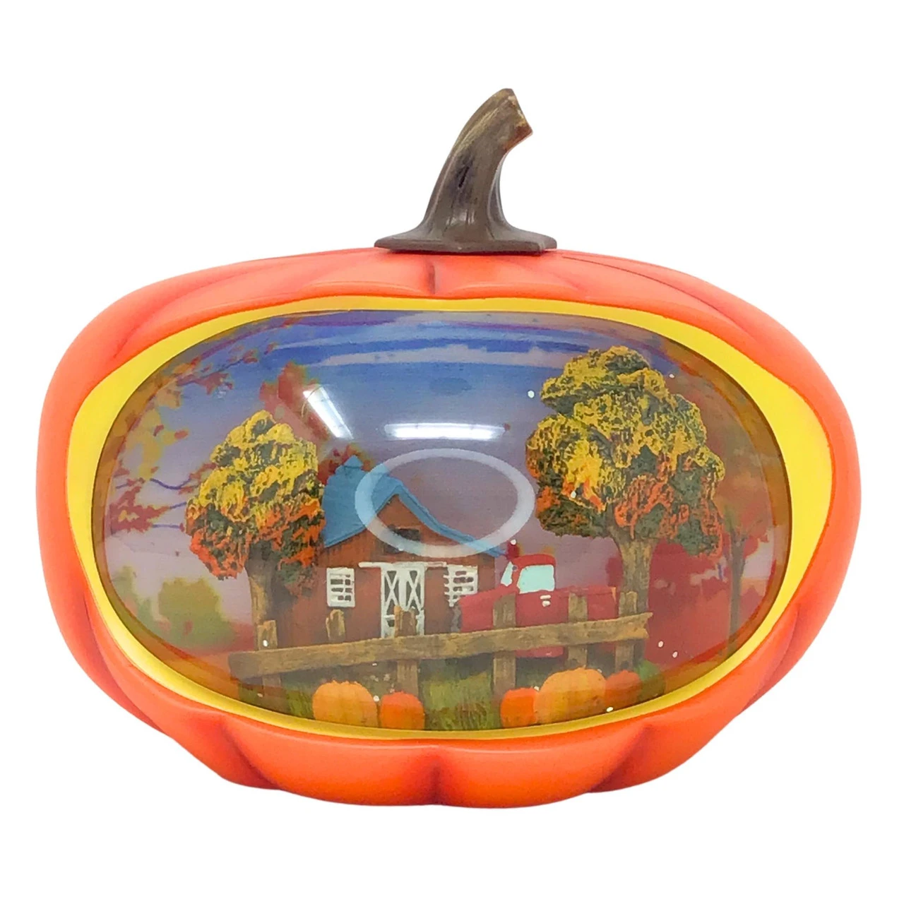 Get ready to add a touch of autumnal magic to your home decor with our Battery Operated Light Up Pumpkin Shimmer! This plastic masterpiece stands 6 inches tall and features a charming country scene that comes to life with a warm and inviting glow. The delightful scene features a barn and pick up truck set in front of a beautiful autumn sky, creating a charming and whimsical effect. And the warm light that emanates from within creates a cozy and inviting atmosphere, perfect for any room in your home. It’s the perfect way to add a touch of magic to your autumn evenings.
