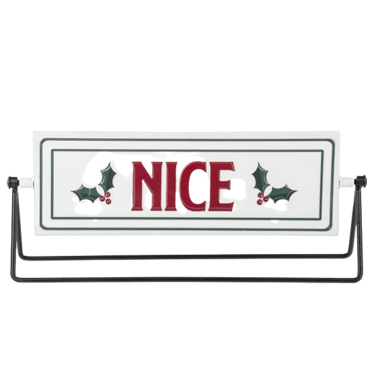 Looking for a fun and unique way to add some festive spirit to your home decor? Our Nice/Naughty Spinning Sign is the perfect solution! This rectangular sign features “Nice” and “Naughty” on either side and is made with high-quality materials for durability. Whether you hang it on your front door or in your living room, this sign is sure to spread some holiday cheer and get everyone into the spirit of the season. Get yours today and enjoy the fun and excitement of the holidays!