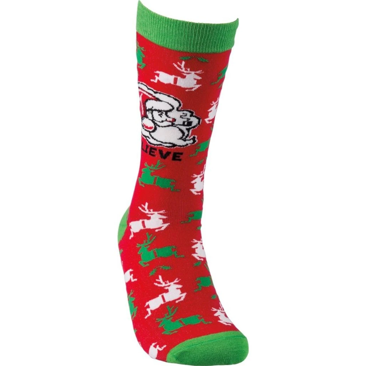 These colorful socks are from our feature woven designs with coordinating “I Believe” sentiment. Cotton, nylon, spandex. These fun I Believe socks are one size fits most.