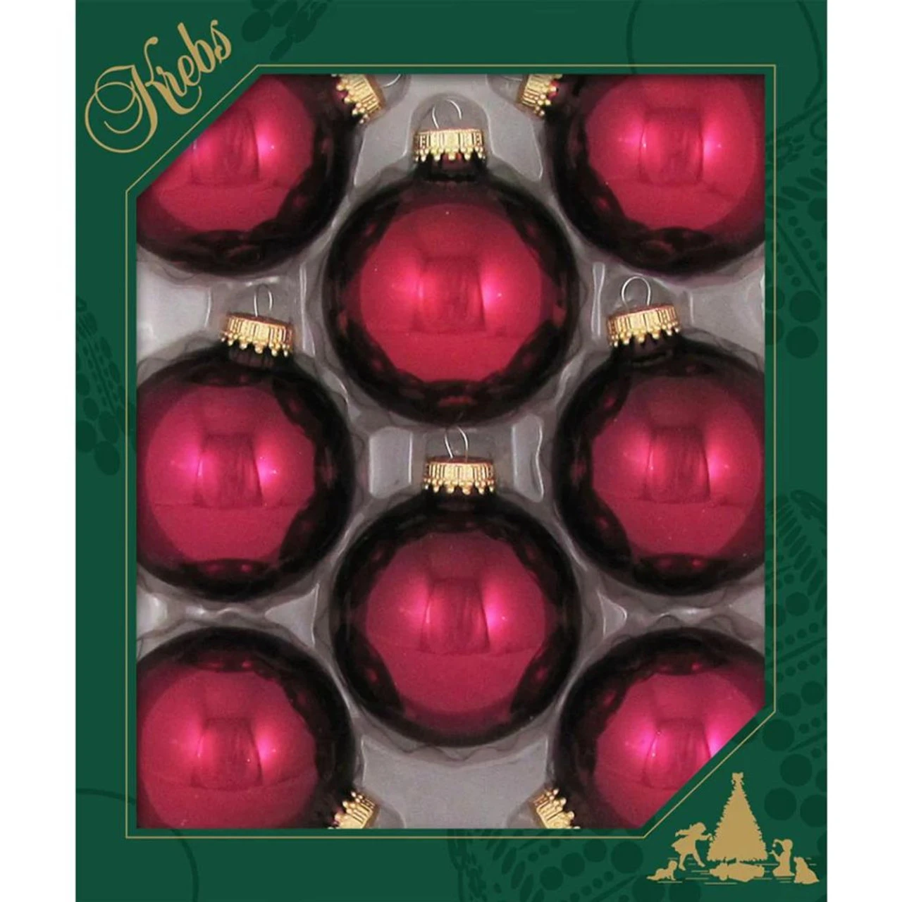 This set of 8 burgundy red glass ornaments is a perfect addition to any ornament collection and can be used year after year.