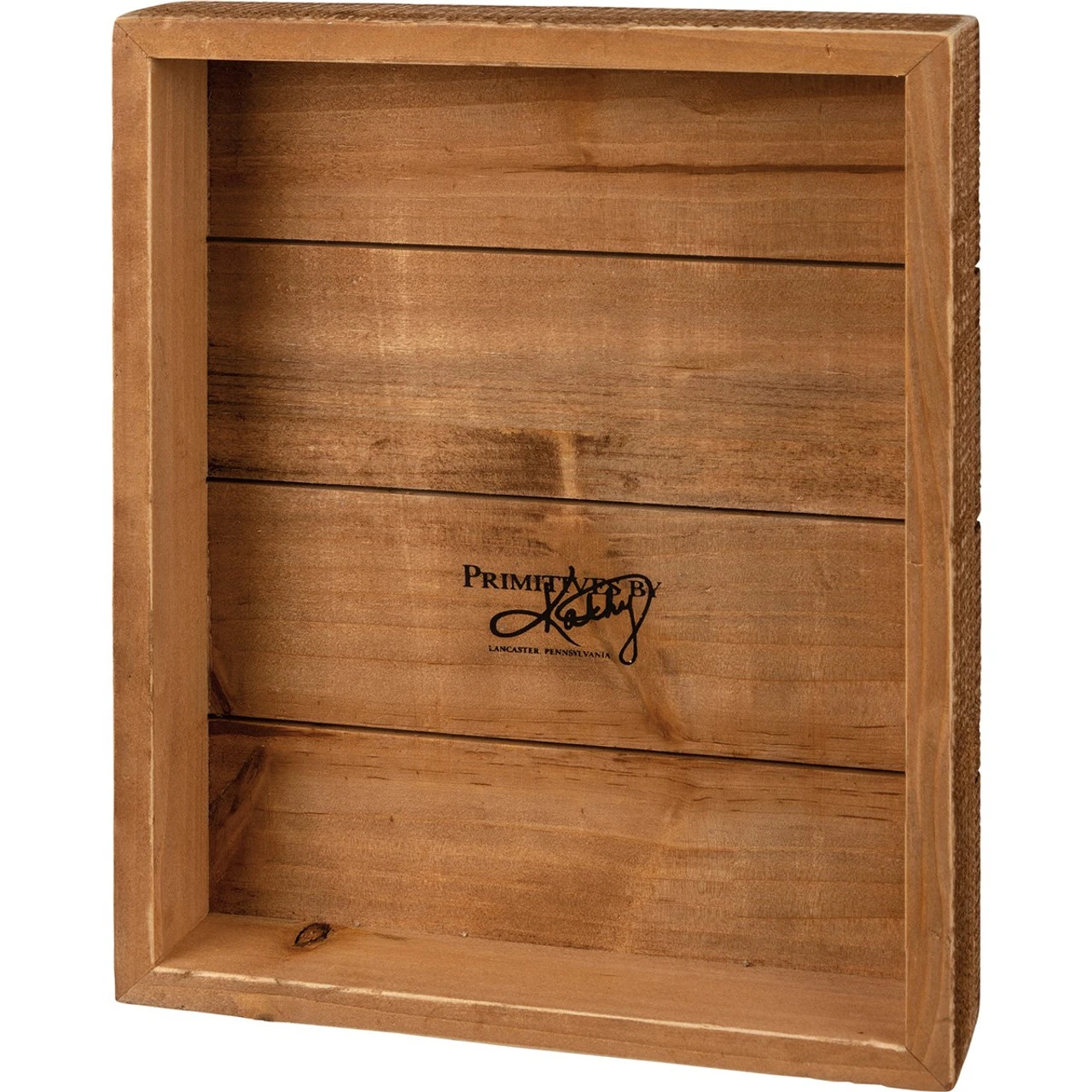 - A varnished wooden box sign featuring the sentiment “Explore”.