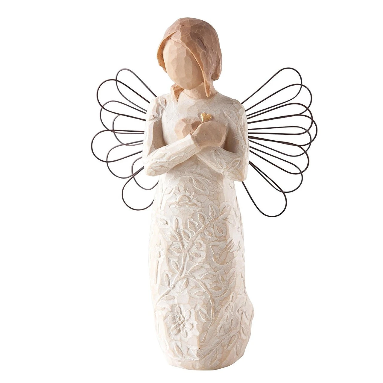 - 5”h hand-painted resin figure with wire wings. Dust with soft cloth or soft brush. Avoid water or cleaning solvents.